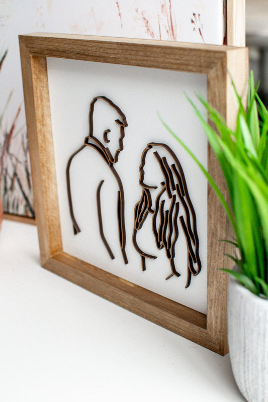 Custom 3D Wood Building Portrait | Framed Line Art Anniversary Gift
